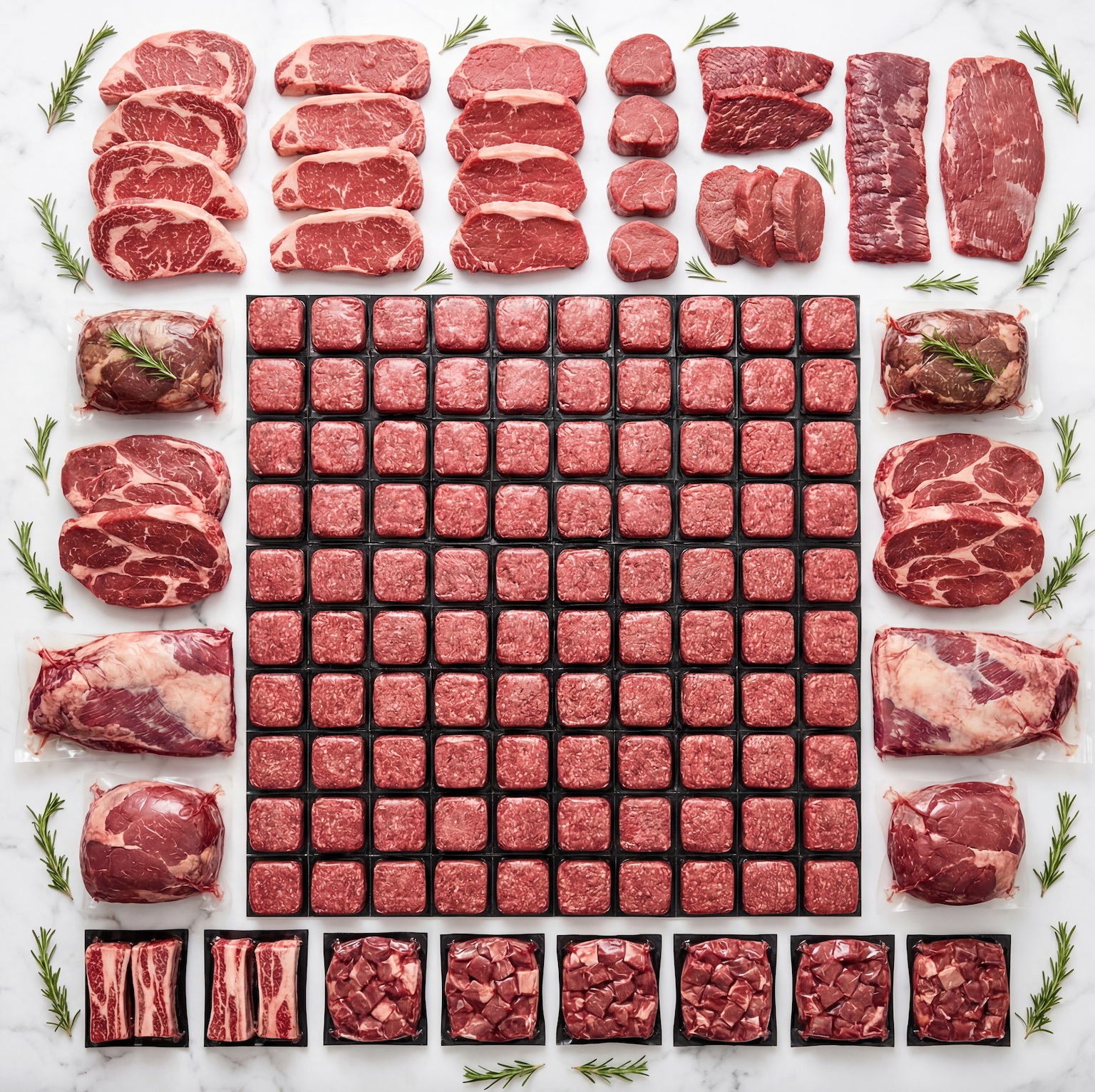 - Ground Beef (90/10 bricks) – 100+ lbs